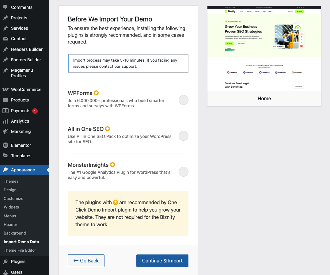 Step 4 - Deactivate the Biznity Theme by simply activating a different theme. Once you activate a different theme, you can delete the Biznity theme.