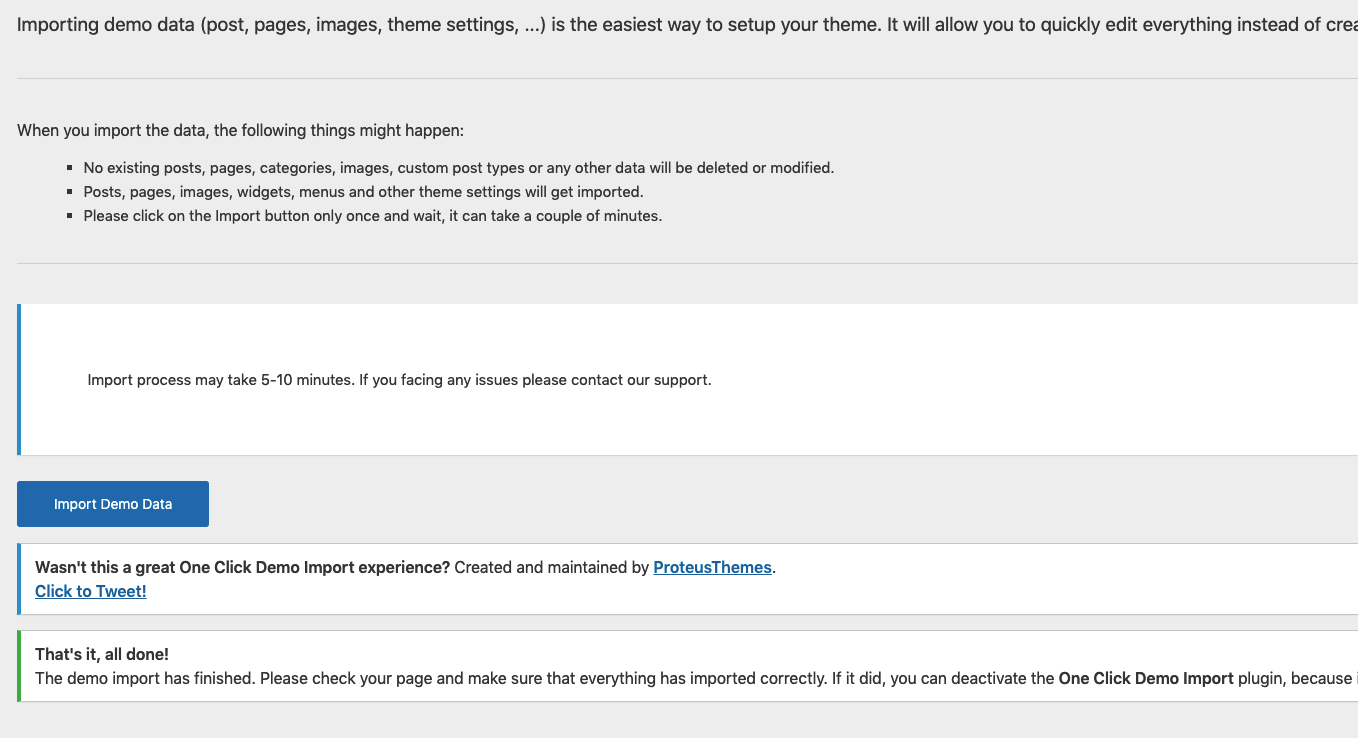 Right after the theme was activated, a notification at the top of the screen will suggest to continue with the installation of the plugins recommended for getting the best our of your theme.