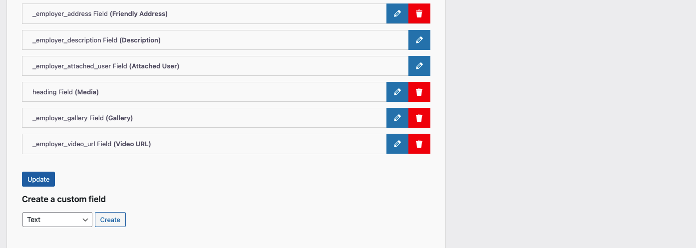 Employers → Fields Manager