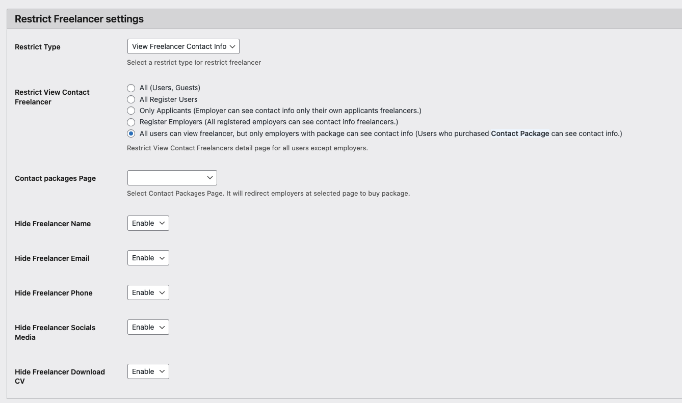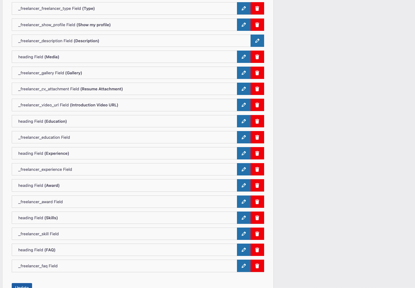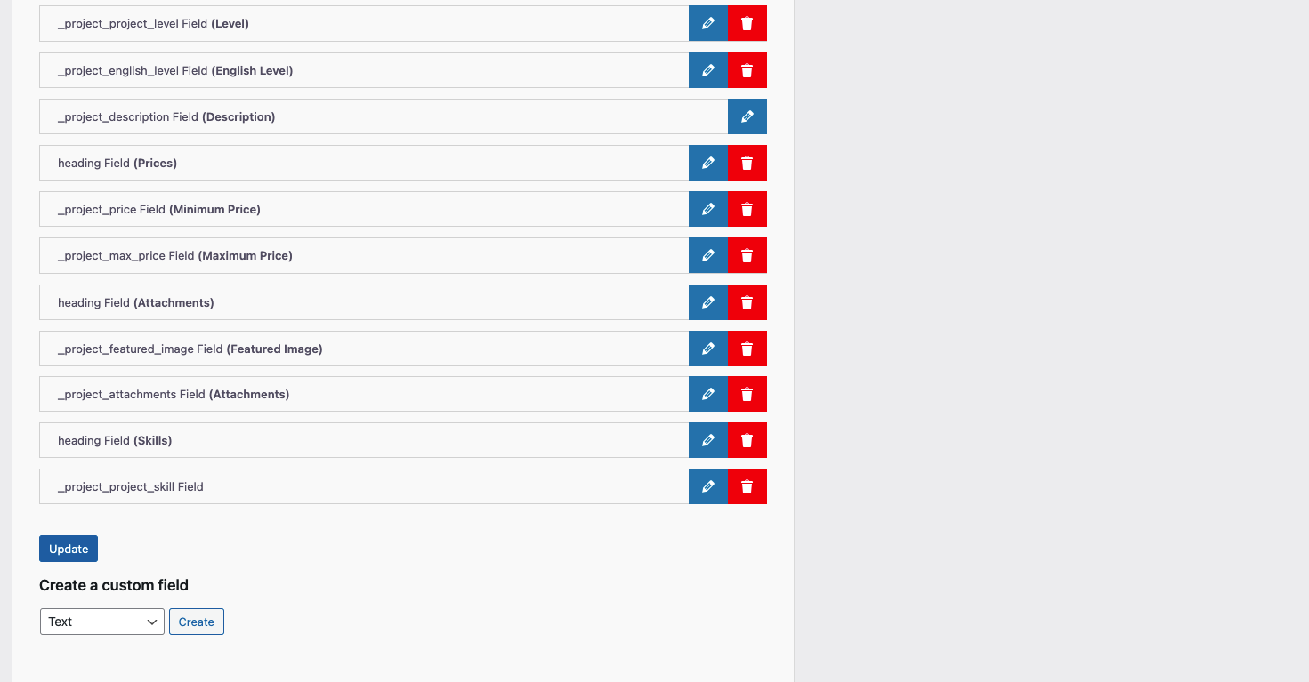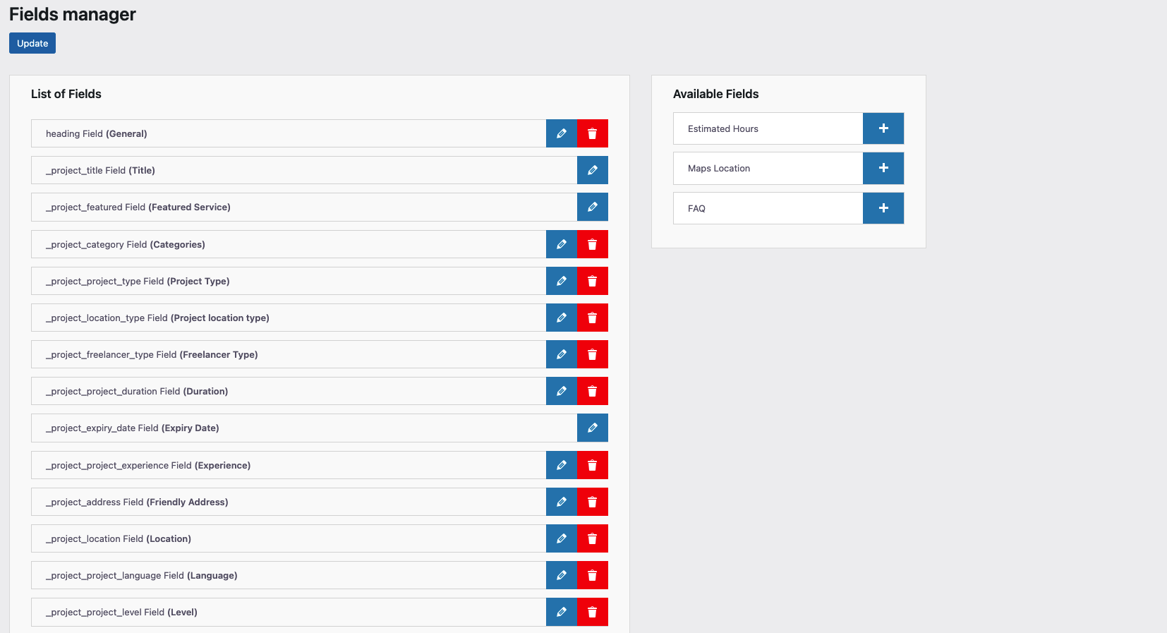 Freelancers → Fields Manager
