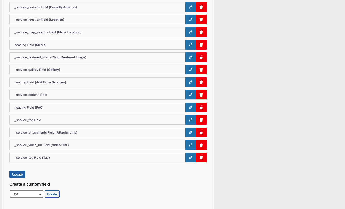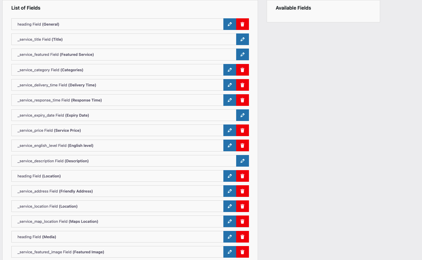 Services → Fields Manager