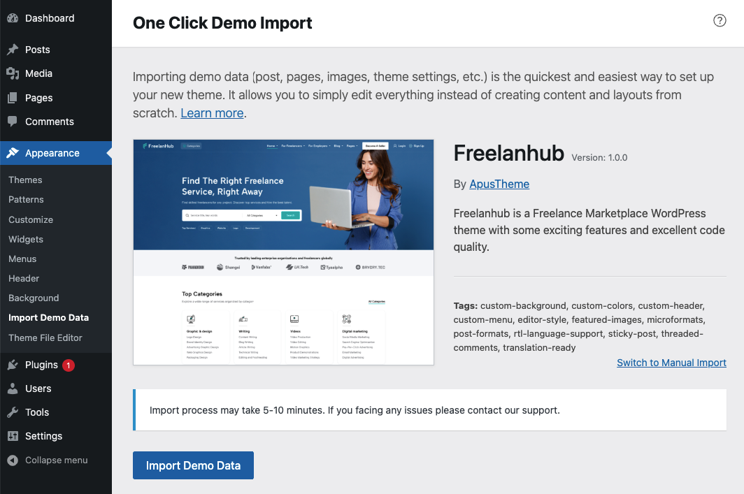 Step 1: Navigate to Appearance → Import Demo Data