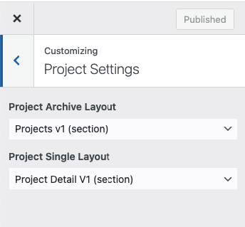 Appearance → Customize → Projects Settings