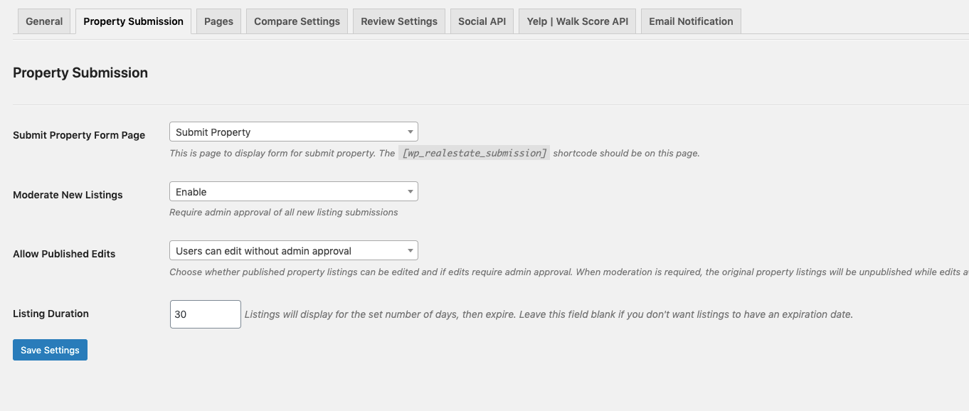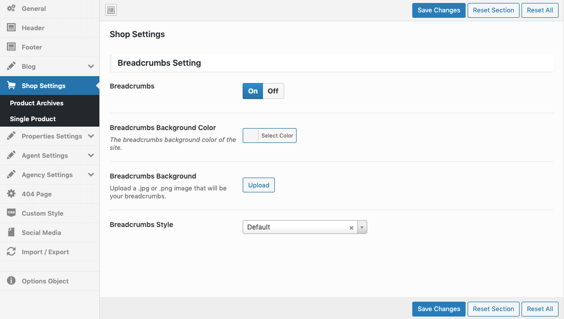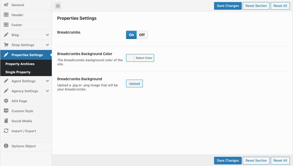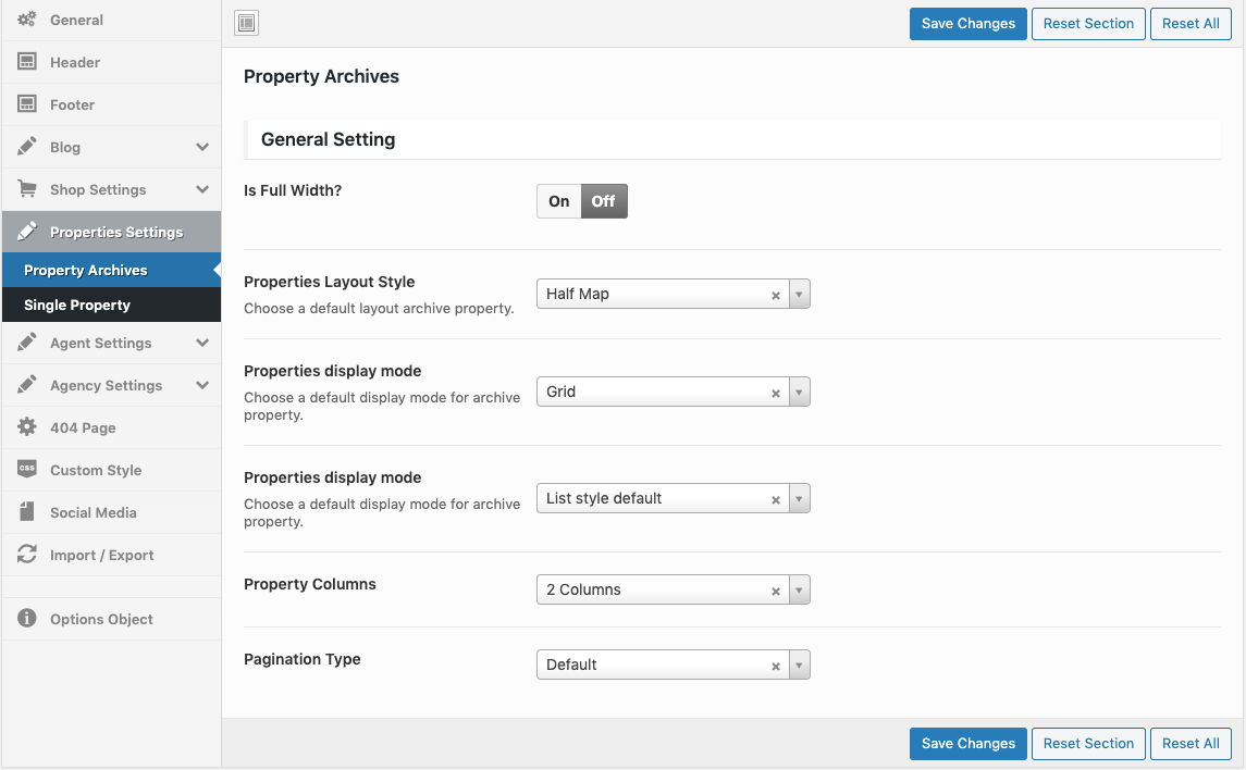 Go to WordPress admin panel and navigate to Theme Options → Property Settings
