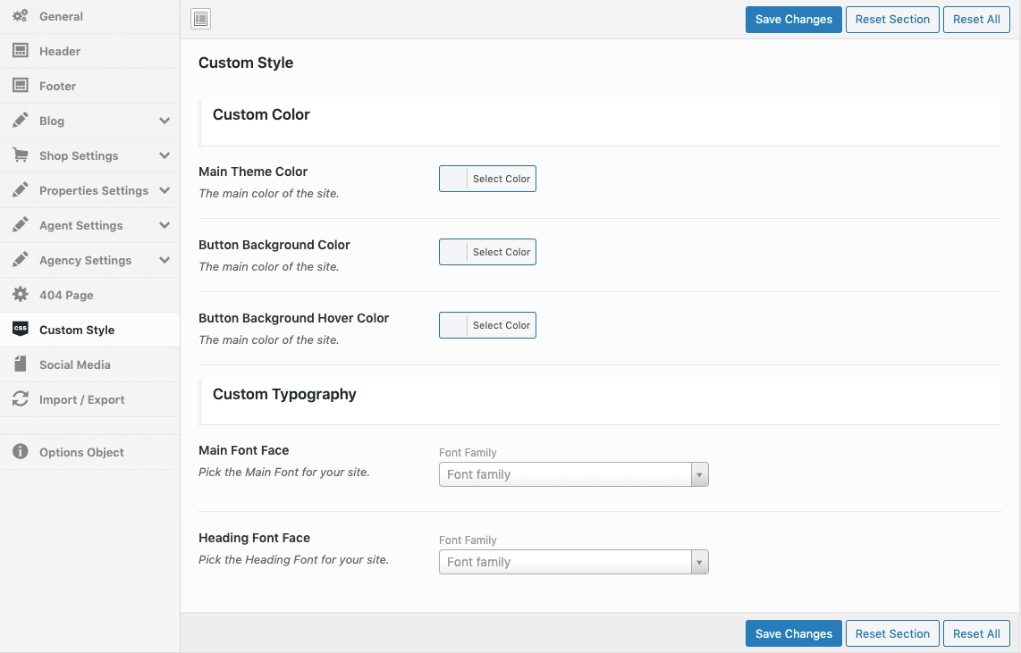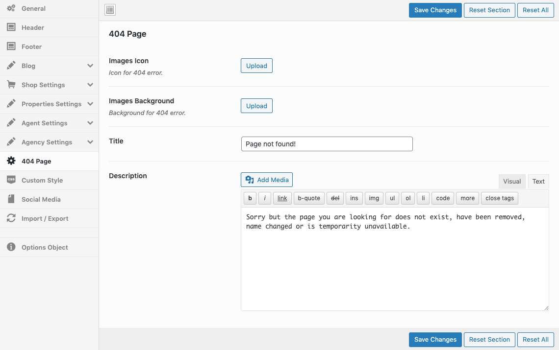 You can reset all of the setting for the each page on our custom panel by clicking “Reset” button on the bottom.
