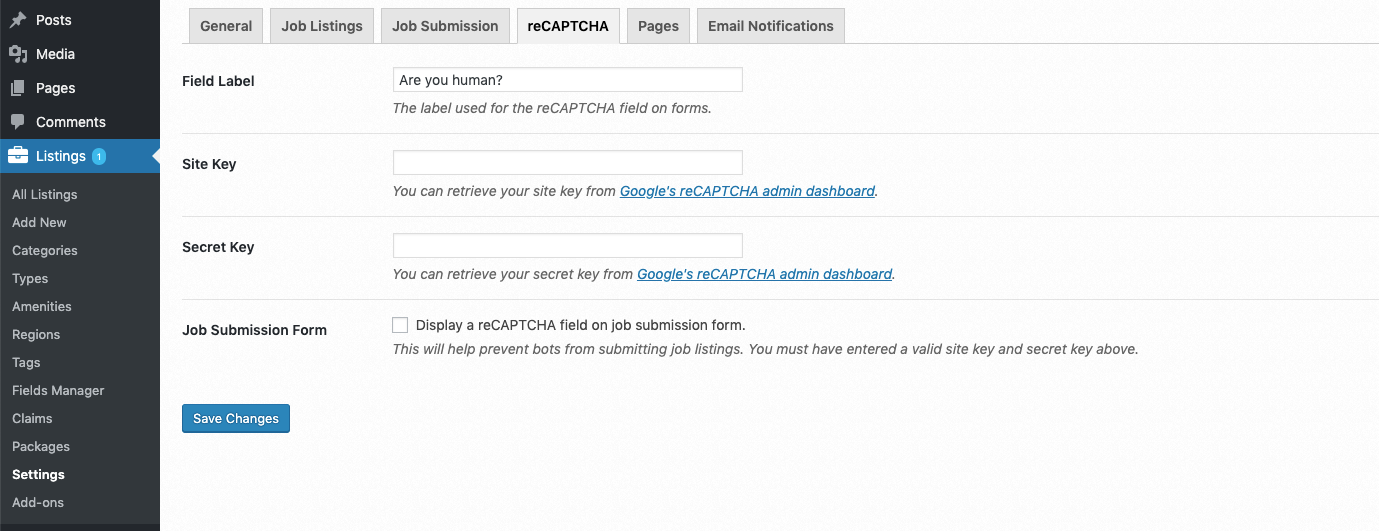 Step 2: Click on reCAPTCHA tab.