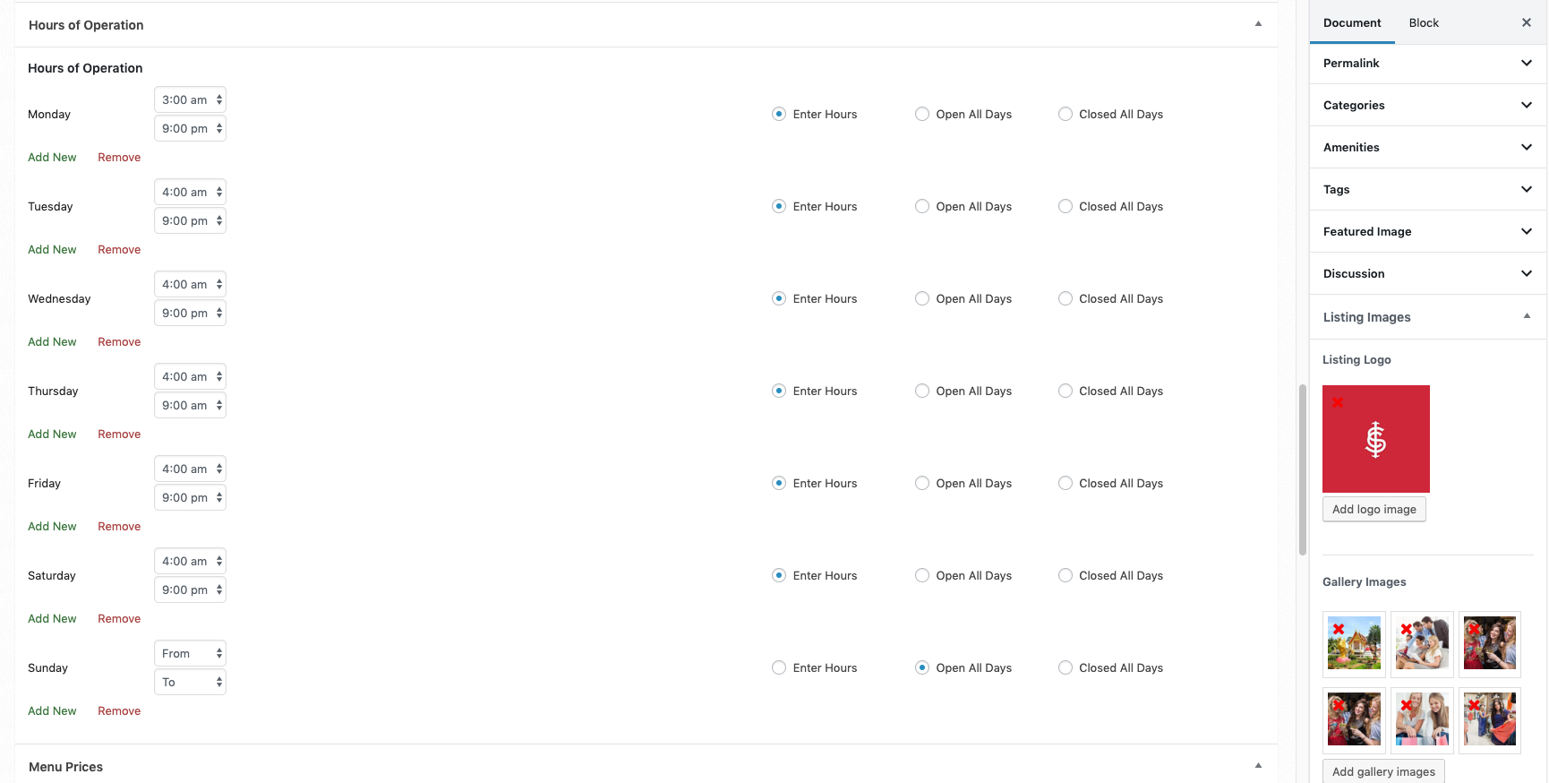 Listing Settings → Add Listing