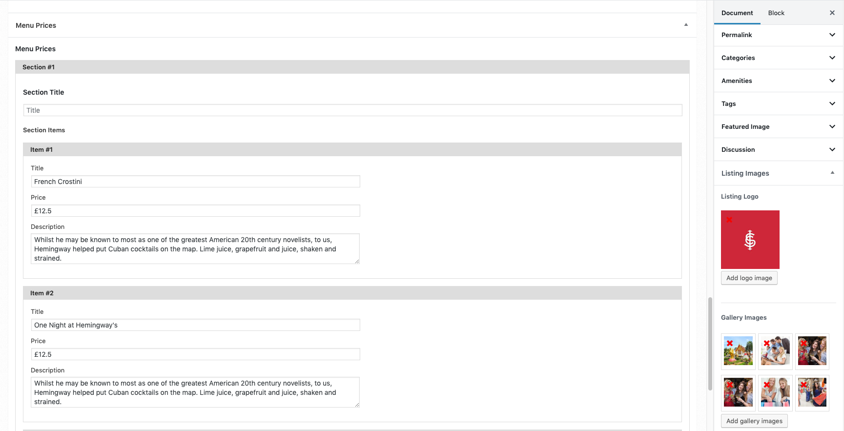 Navigate to Listings → Add Listing