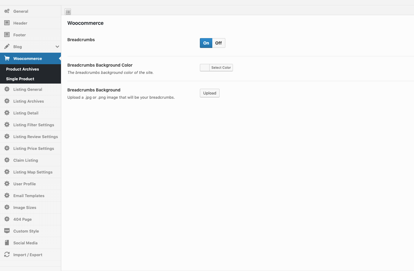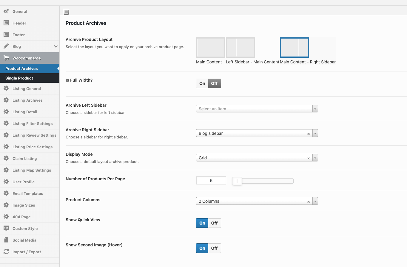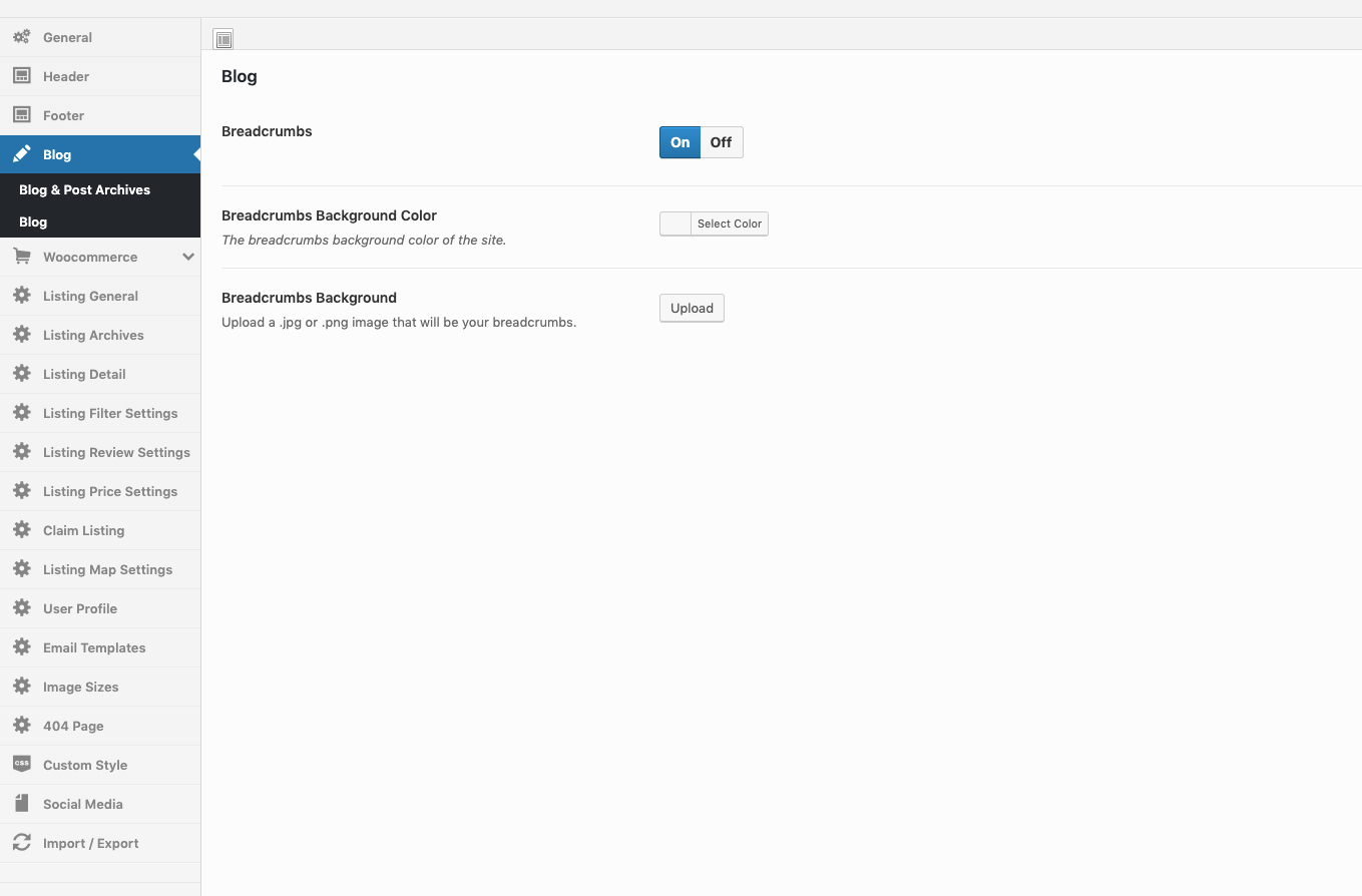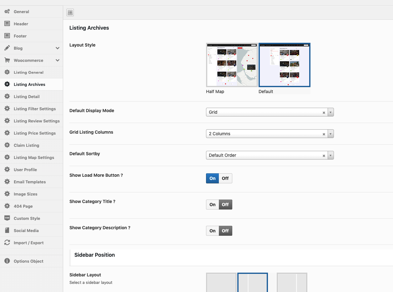 Theme Options → Listing Options