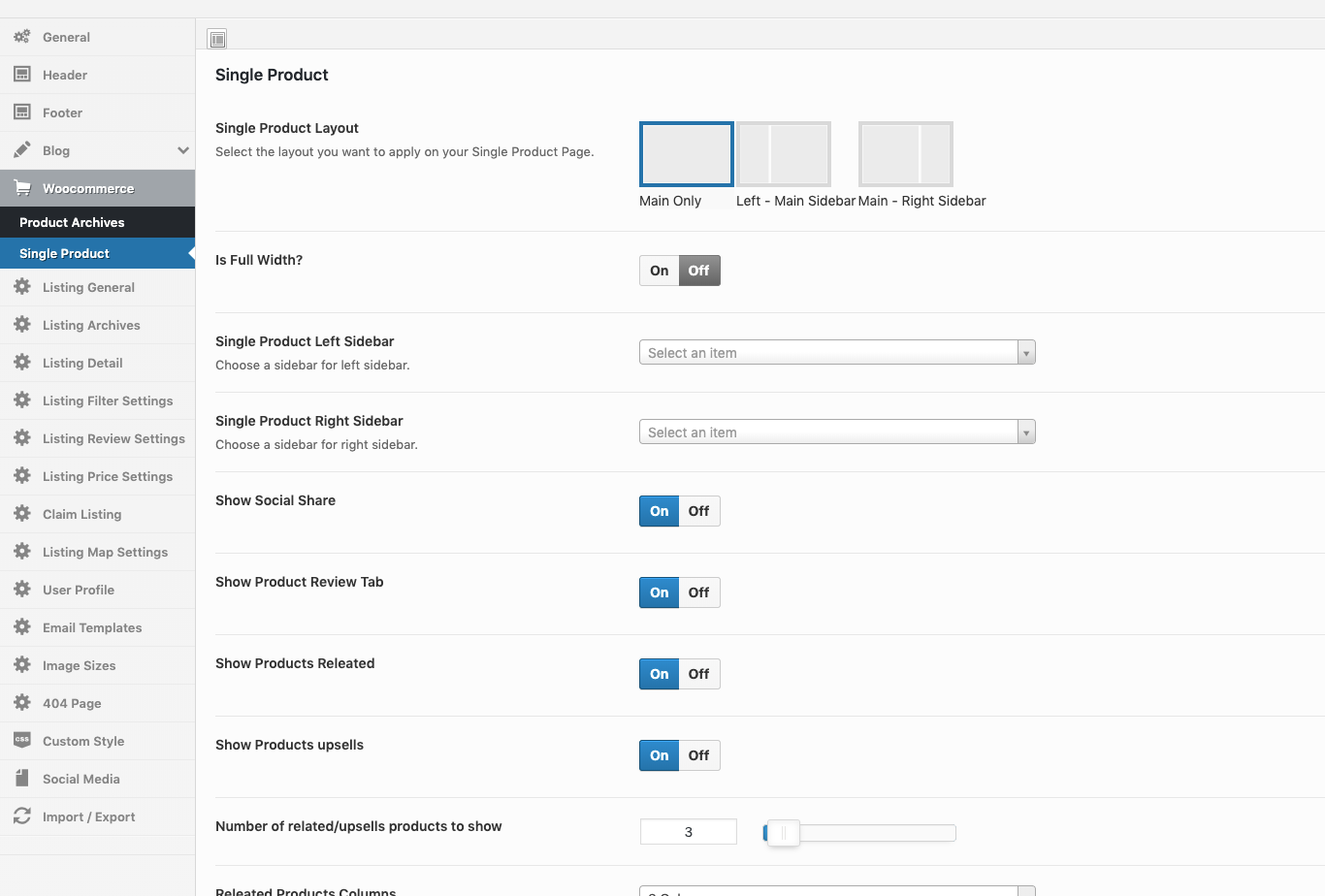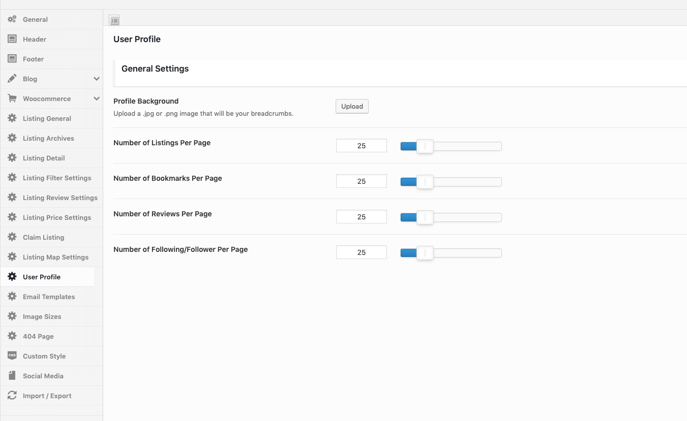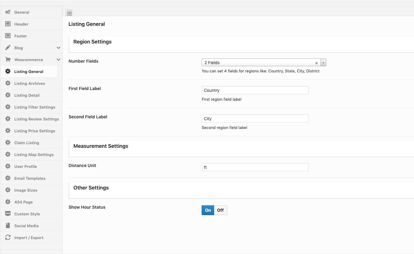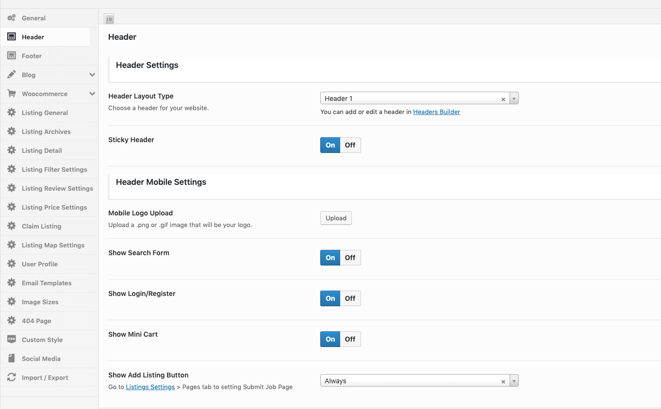 Theme Options → Listing Options