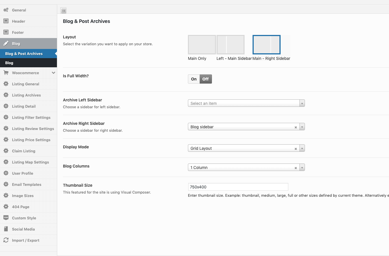 Go to WordPress admin panel and navigate to Theme Options → Listing Archives