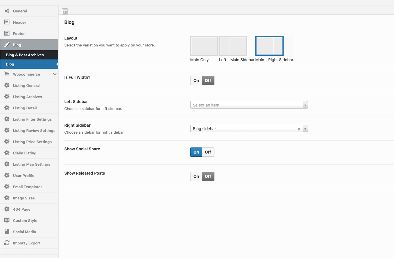 Theme Options → Blog