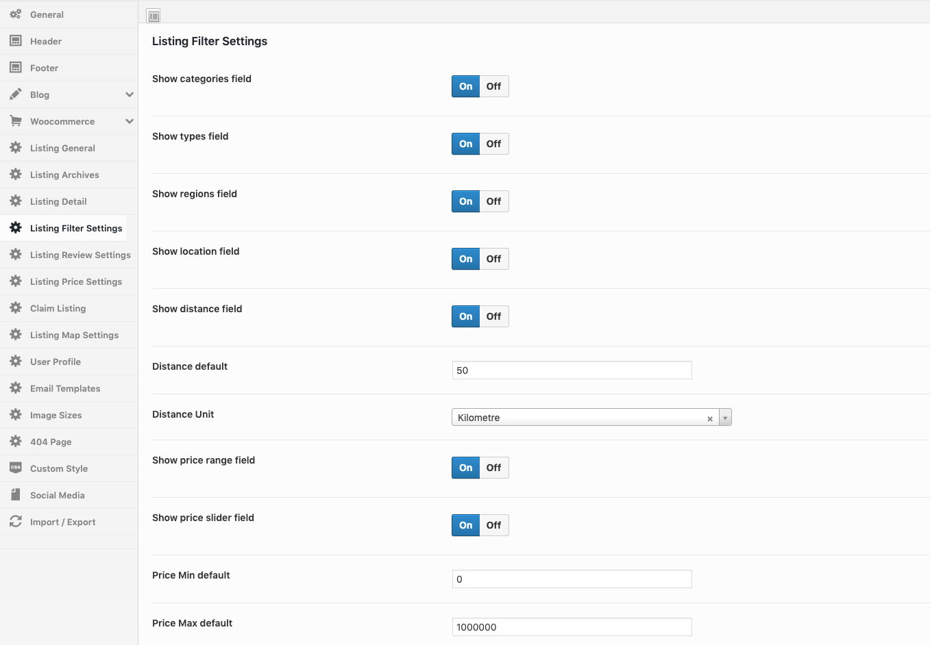 Go to WordPress admin panel and navigate to Theme Options → Listing Filter Settings