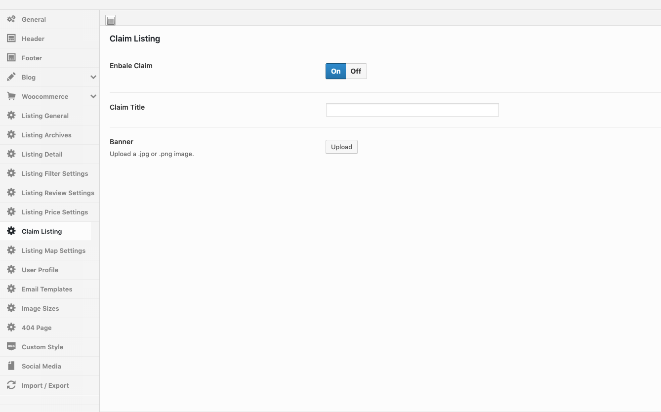 Go to WordPress admin panel and navigate to Theme Options → Claim Listing