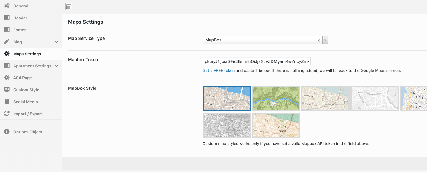 Go to WordPress admin panel and navigate to Theme Options → Maps Settings