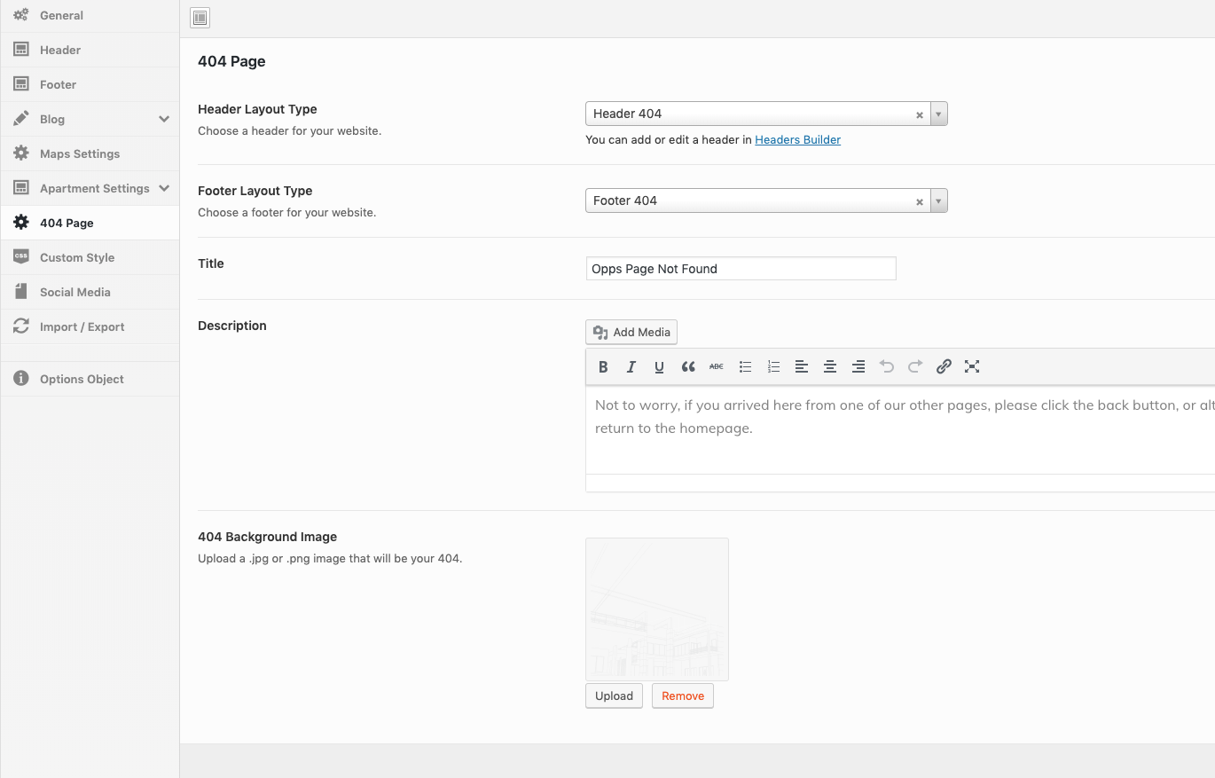 Theme Options → 404 Page