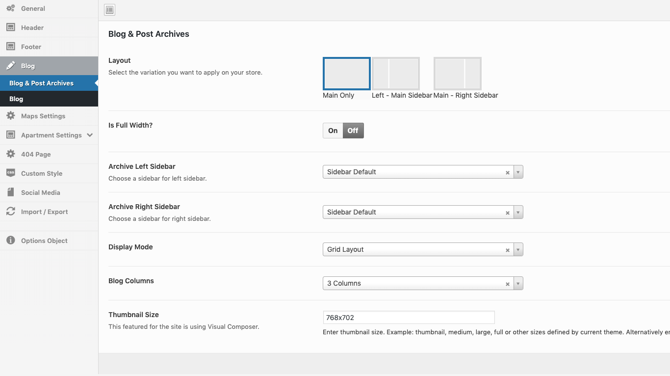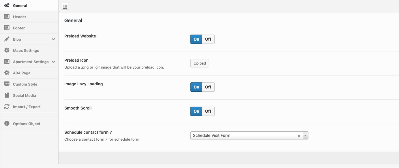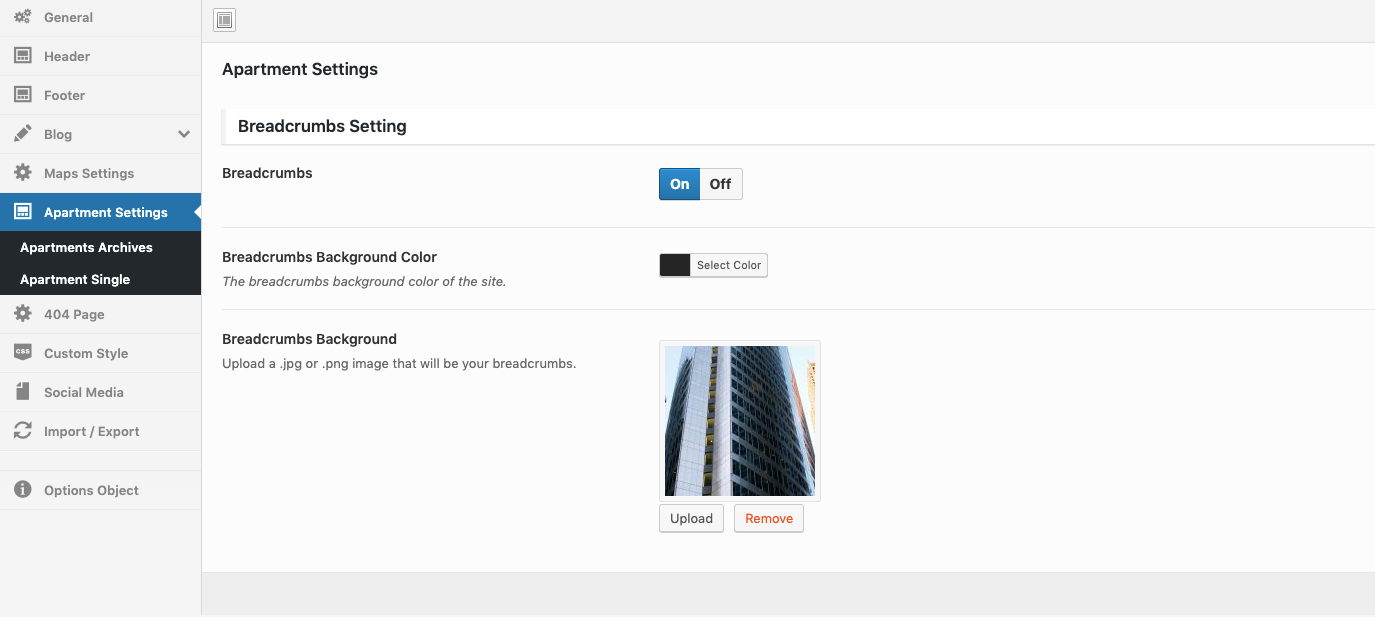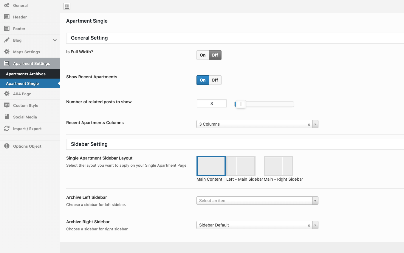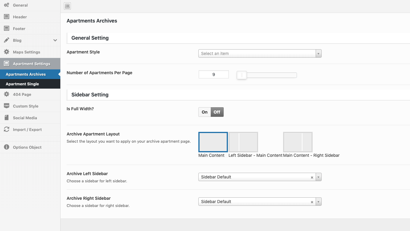 Theme Options → Apartment Settings