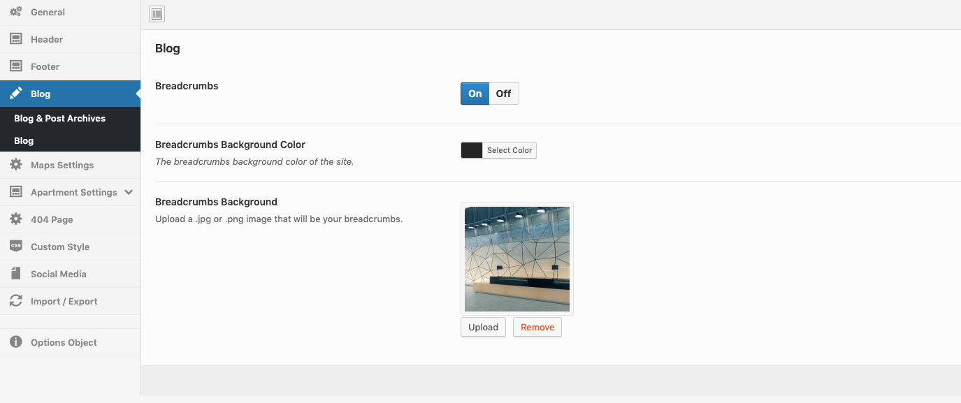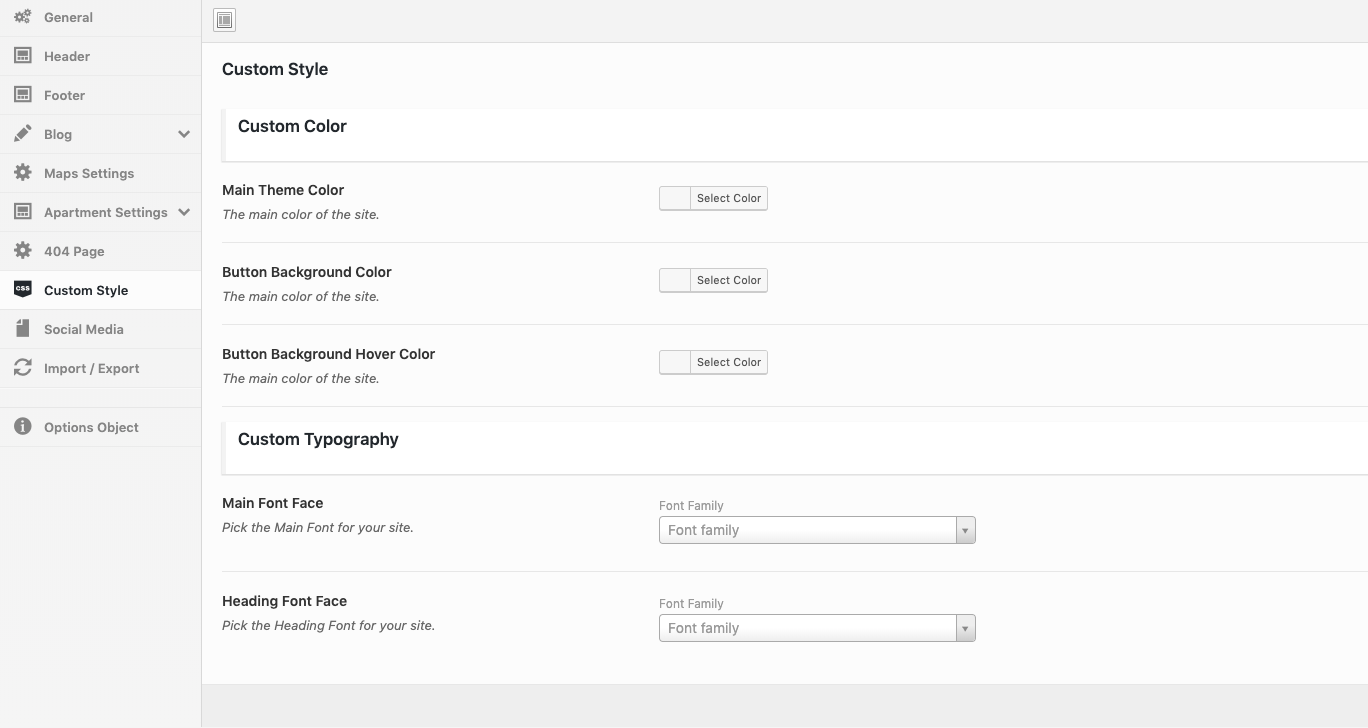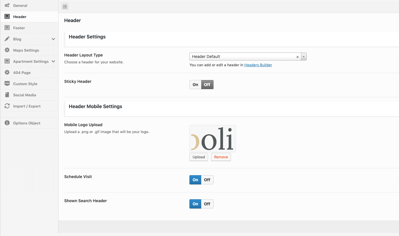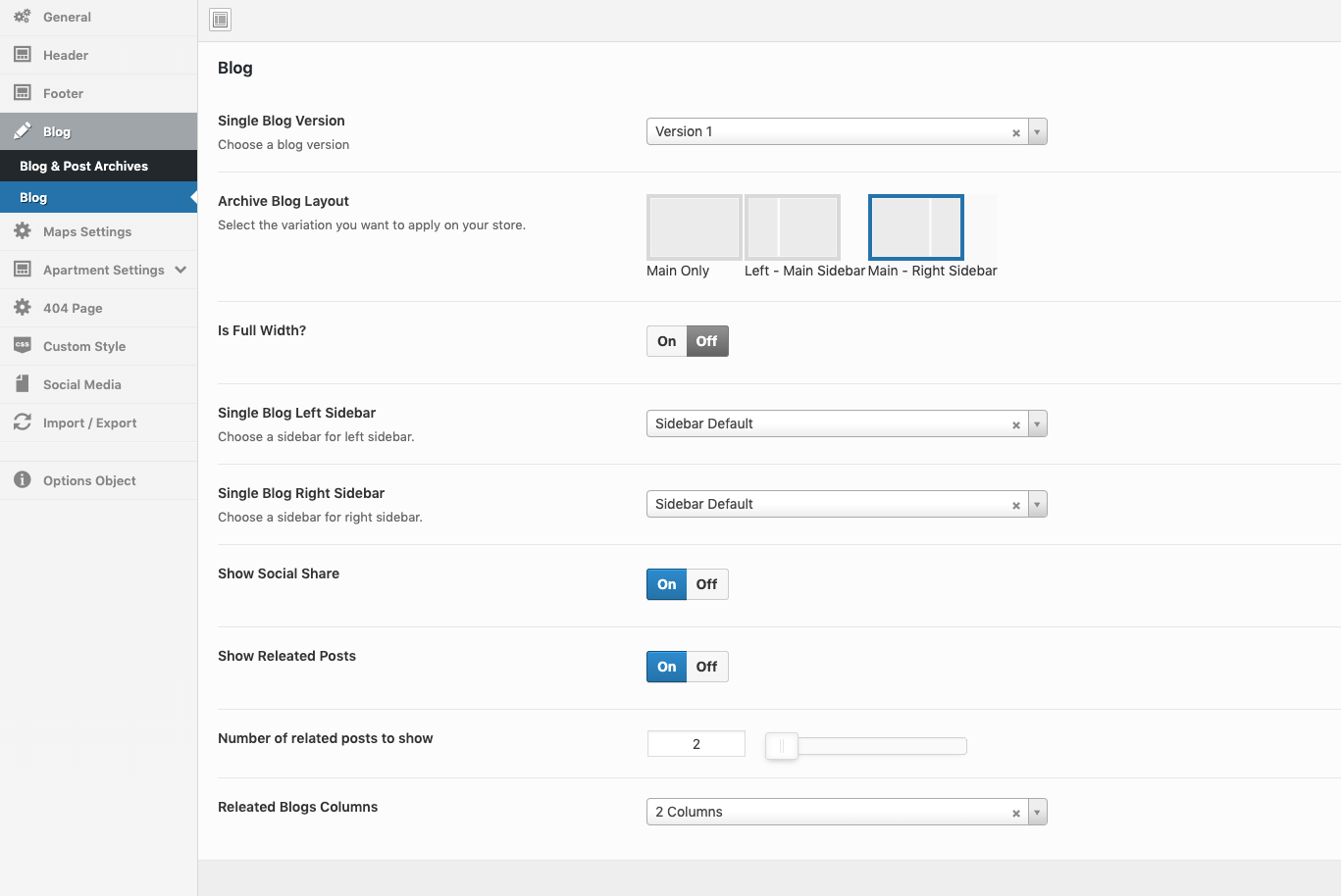 Theme Options → Apartment Settings