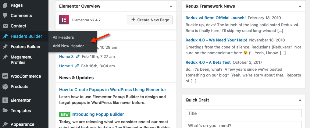 Step 1: Login to your WordPress admin panel, and navigate to Header Builder