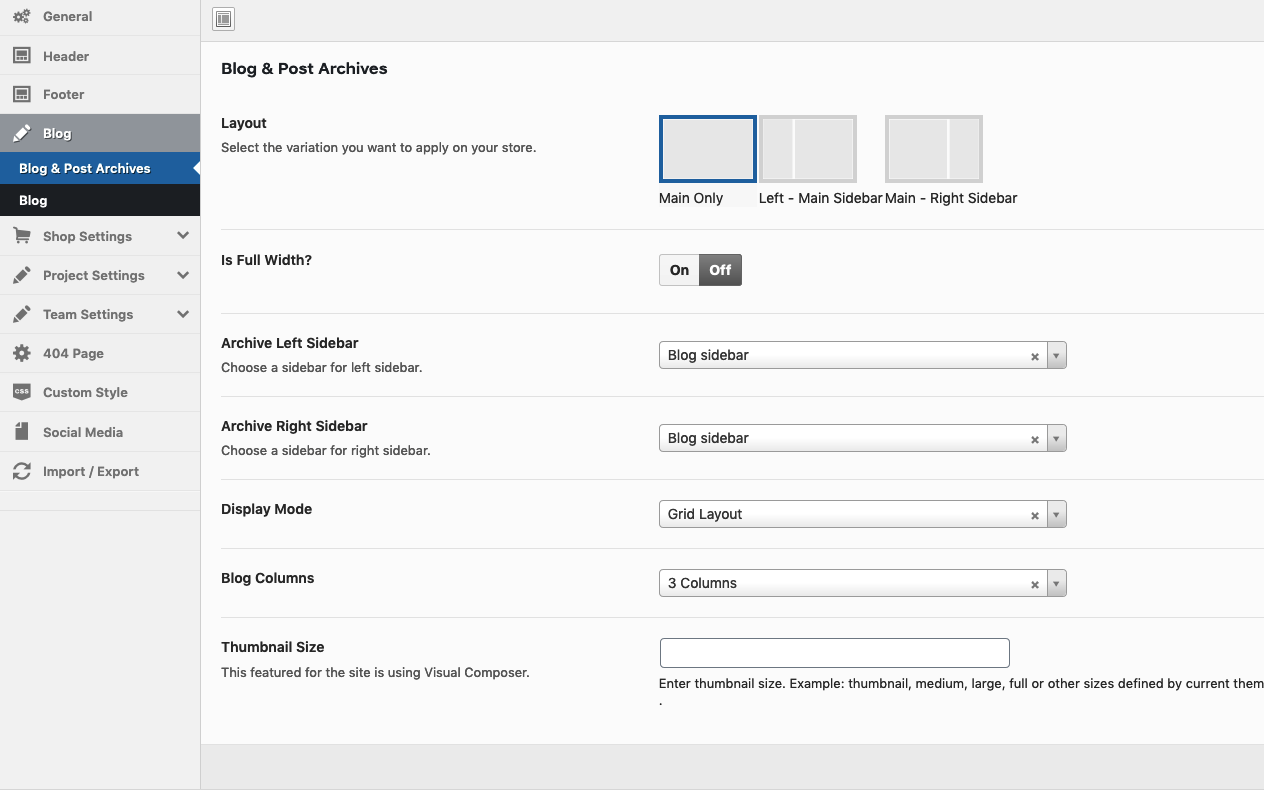 Theme Options → Blog