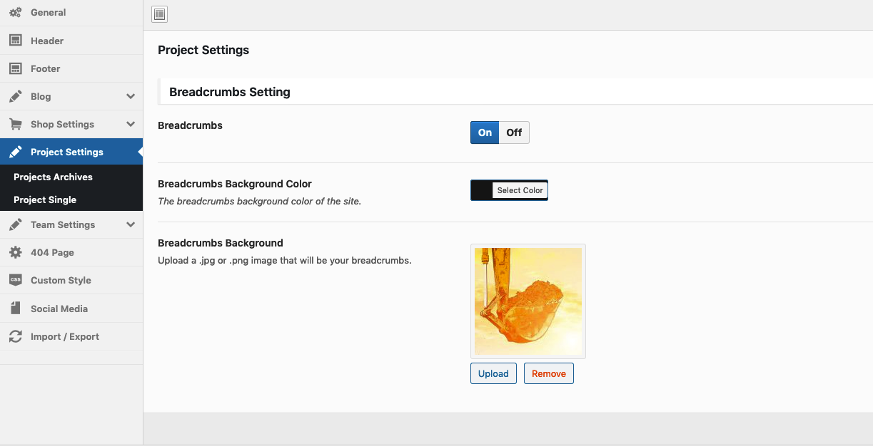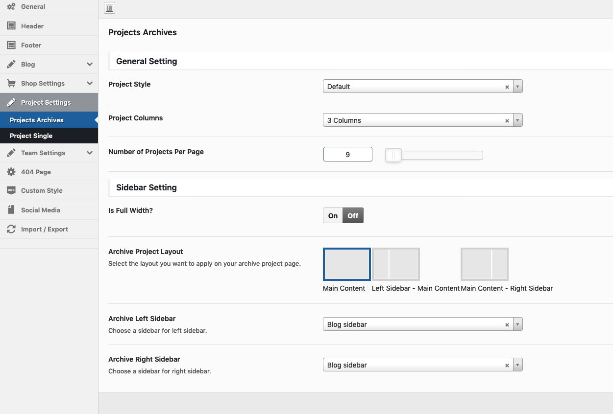 Theme Options → Project Settings