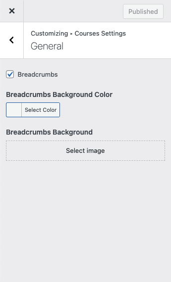 Go to WordPress admin panel and navigate to Appearance → Customize → Courses Settings