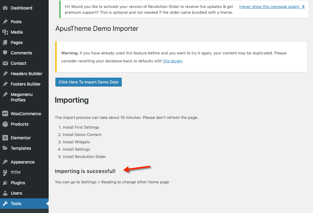 Theme Installation → Install Data Demo