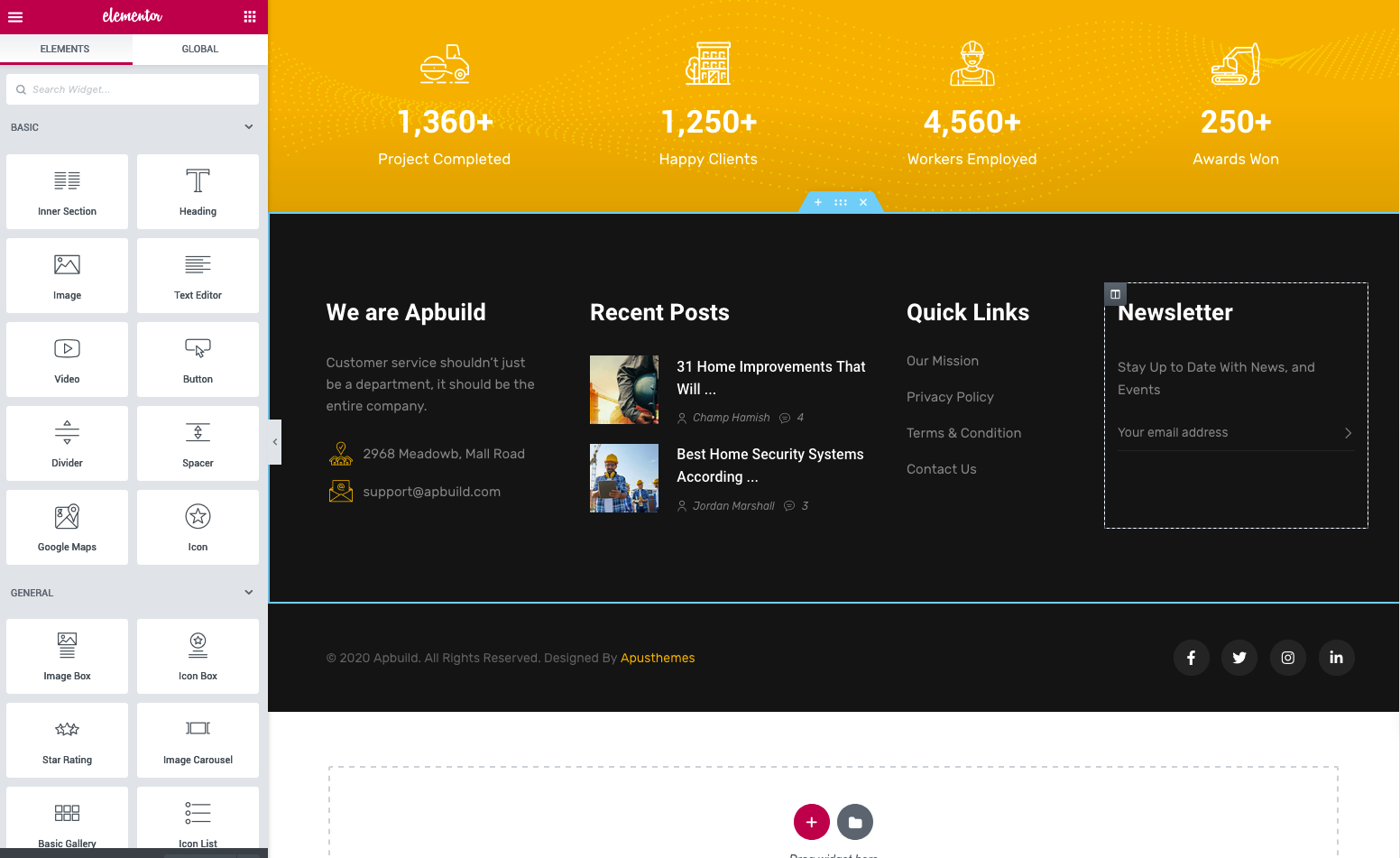You can quickly build a home page using Elementor for WordPress that is drag and drop frontend and backend page builder plugin that will save you tons of time working on the site content. You will be able to take full control over your WordPress site, build any layout you can imagine – no programming knowledge required