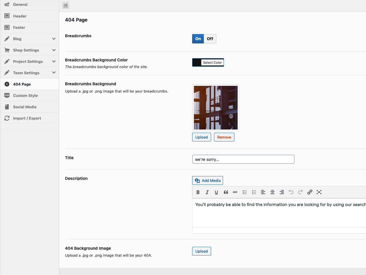 Theme Options → 404 Page