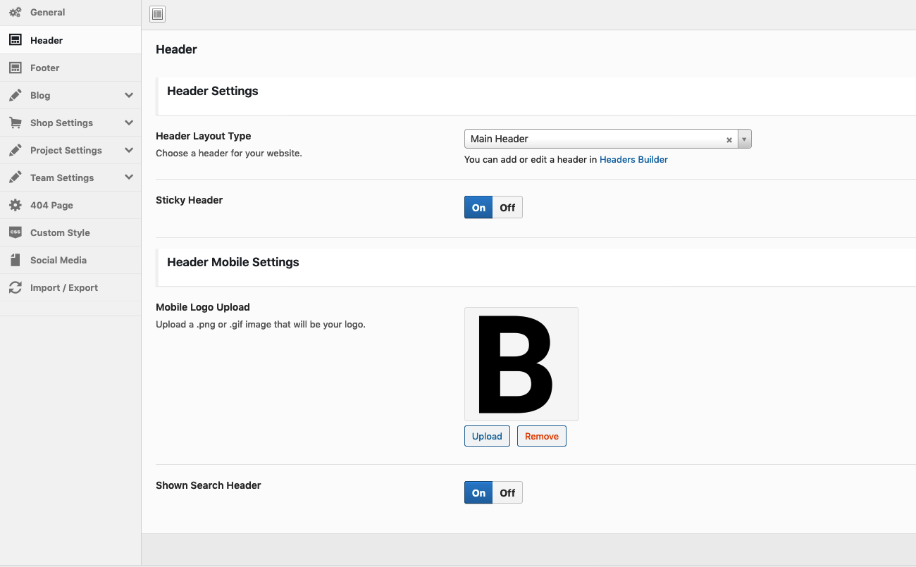 Theme Options → Header