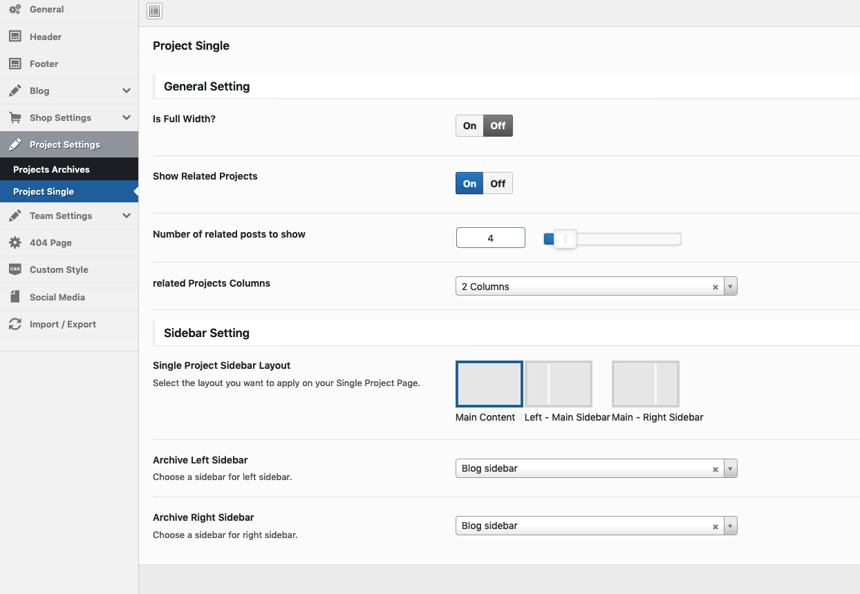 Theme Options → Project Settings