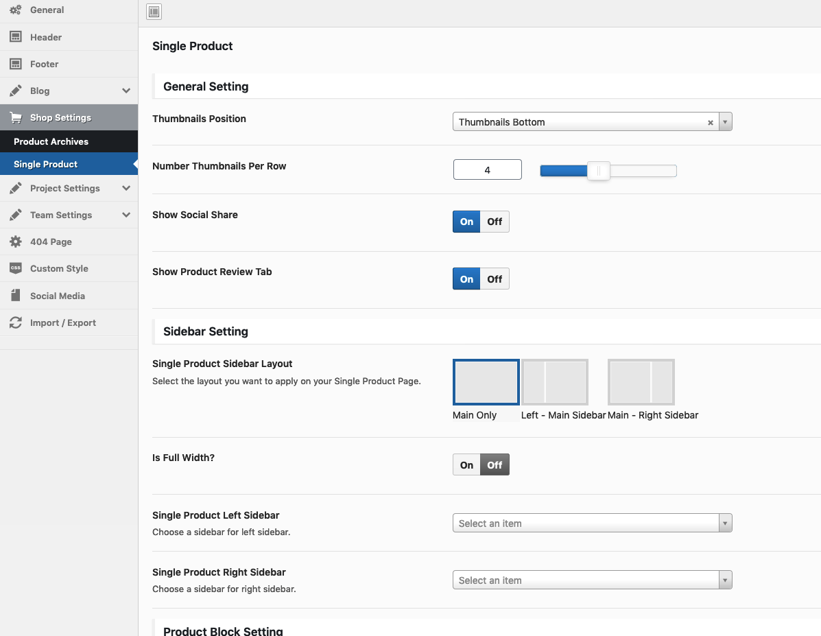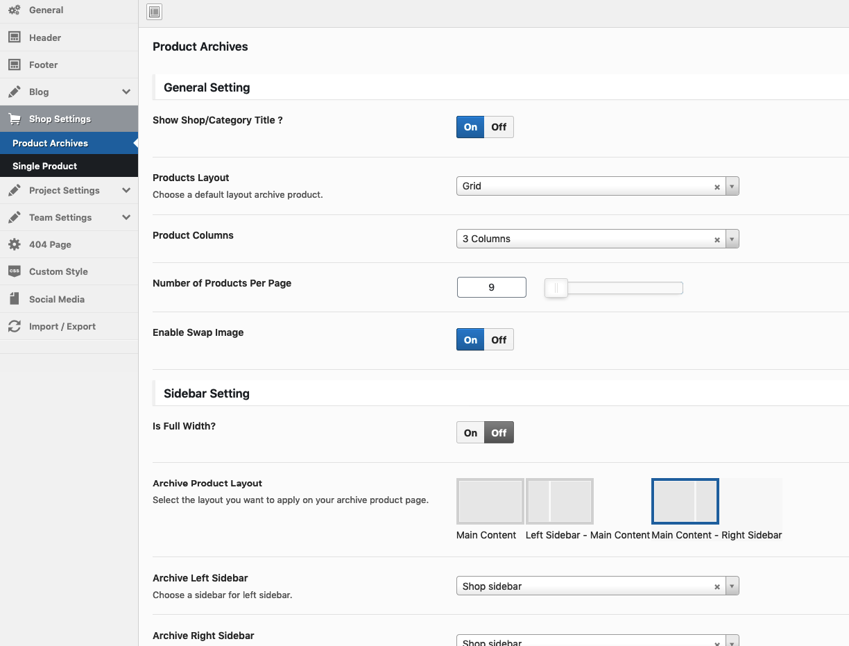 Theme Options → Shop Settings