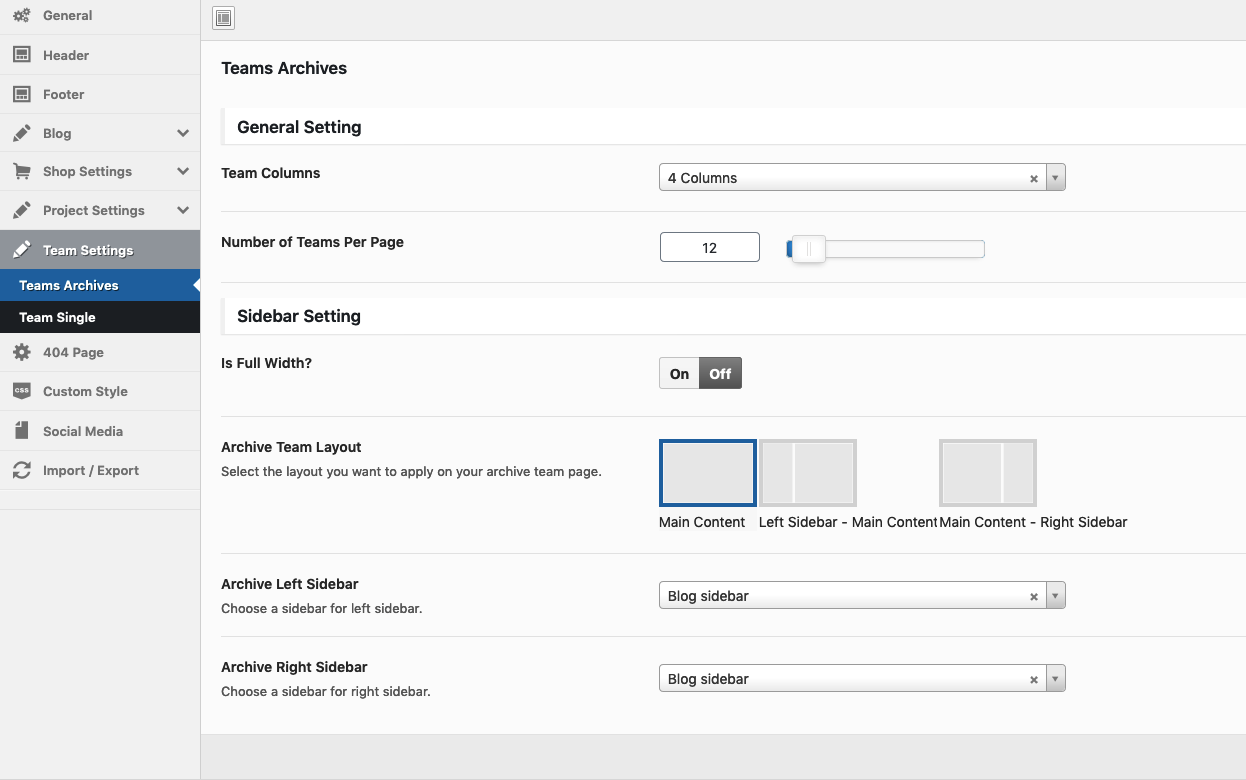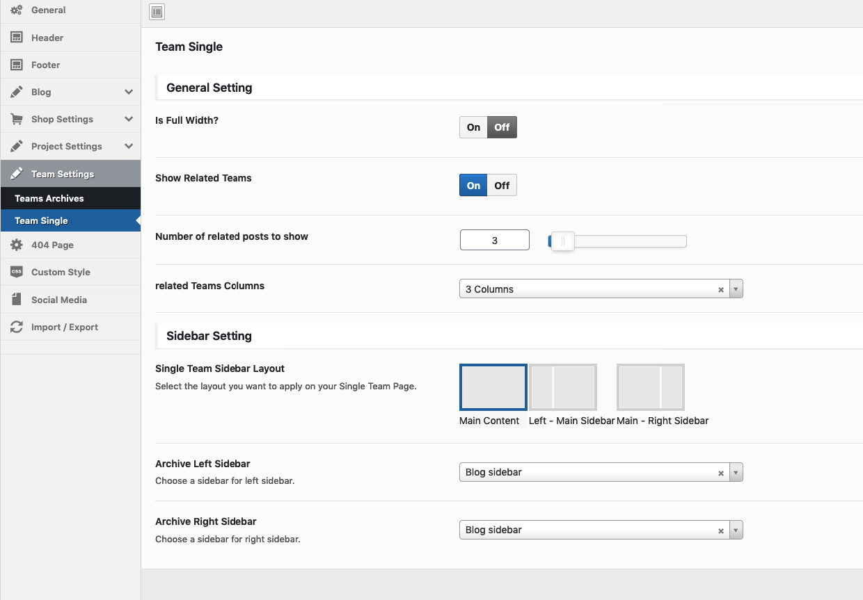Theme Options → Team Settings