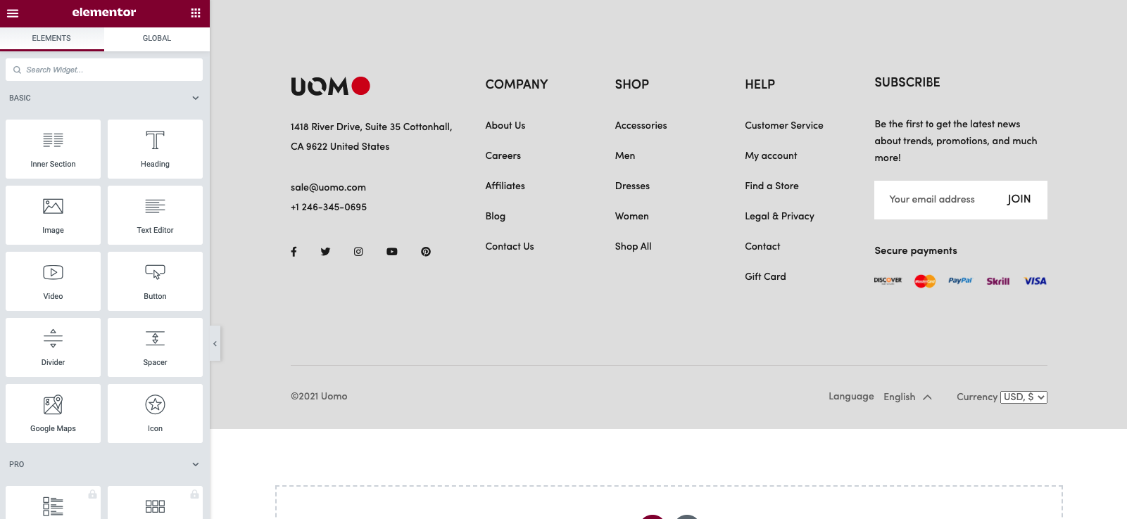 - Footer Layout - Select skin specific for Footer on page or use Globalsidebar.
